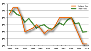 Saving Money – Variable rate loans and mortgages often have lower interest rates than the fixed rate loans and mortgages being offered by banks. This is only true at the time you take out the mortgage. Interest rates do change and they can go up and down, however, at the time you sign, the variable interest rate is usually lower than the prevailing fixed interest rates. This is an excellent way to save money especially if you feel that for the foreseeable future, interest rates are not likely to change much.